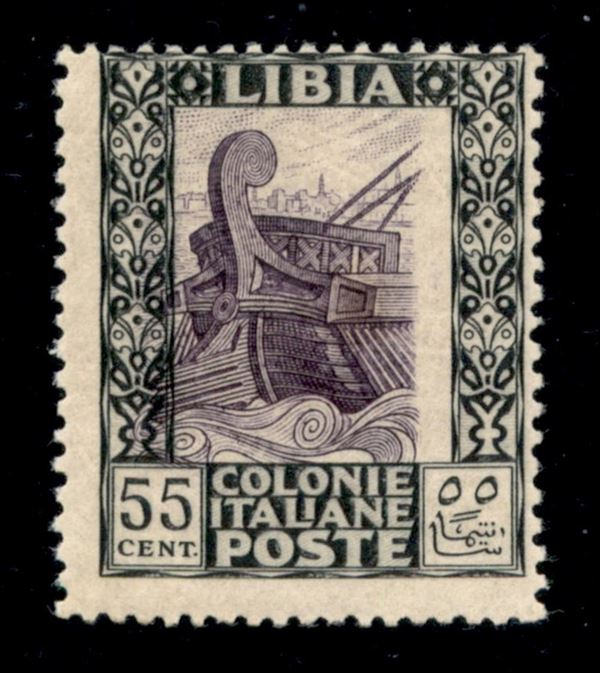 1925 - 55 cent Pittorica (52b varietà f - Torino) con centro spostato - gomma integra - cert. AG