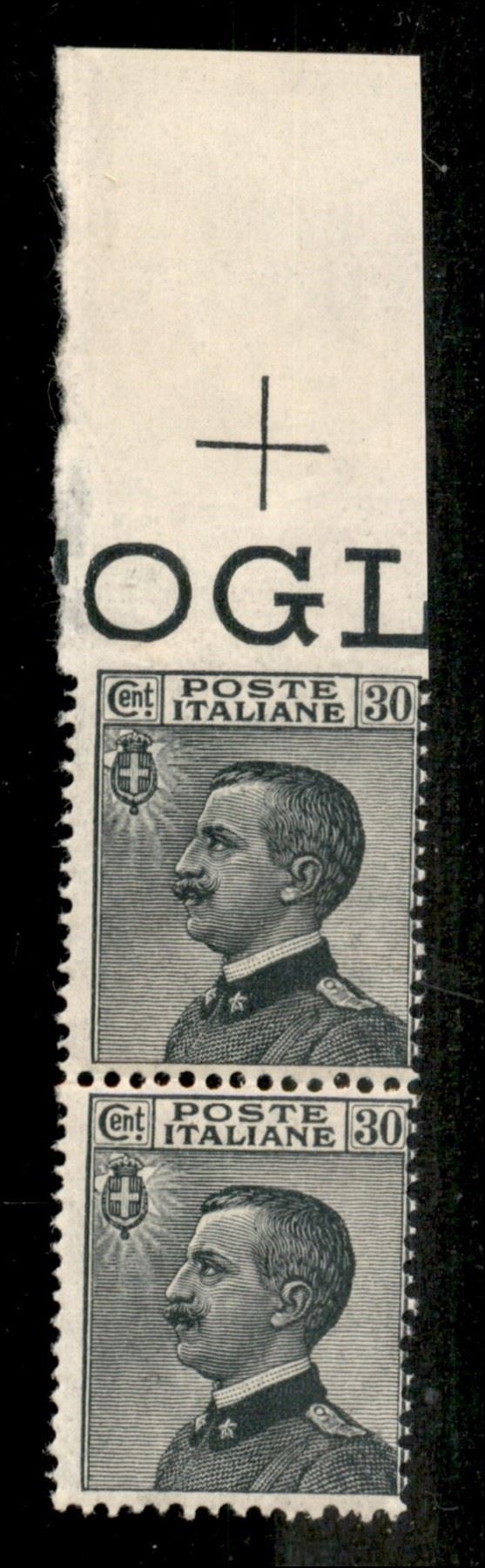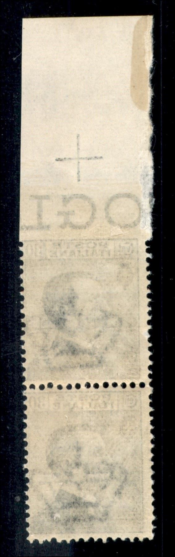 1925 - Michetti coppia verticale 30 cent - esemplare superiore non dentellato in alto con bordo foglio (185b) - minima traccia di linguella