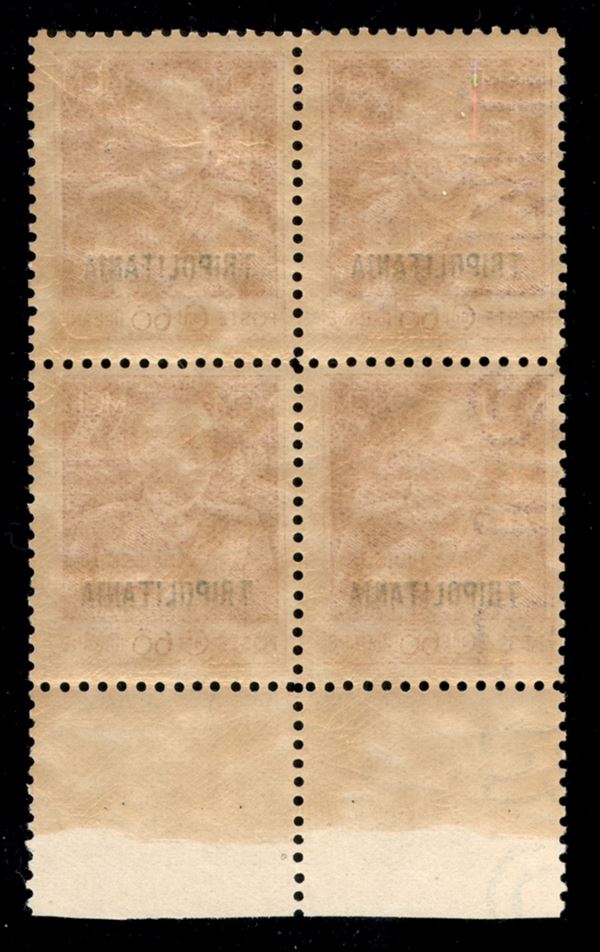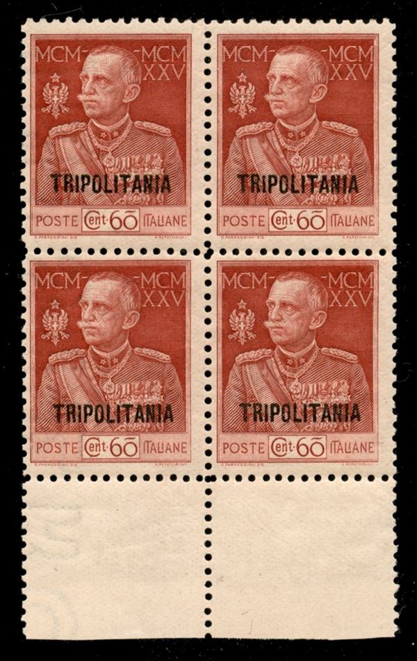 1925 - Quartina del 60 cent Giubileo (23/23a) - bordo foglio con filigrana lettere lungo la verticale sinistra - gomma integra