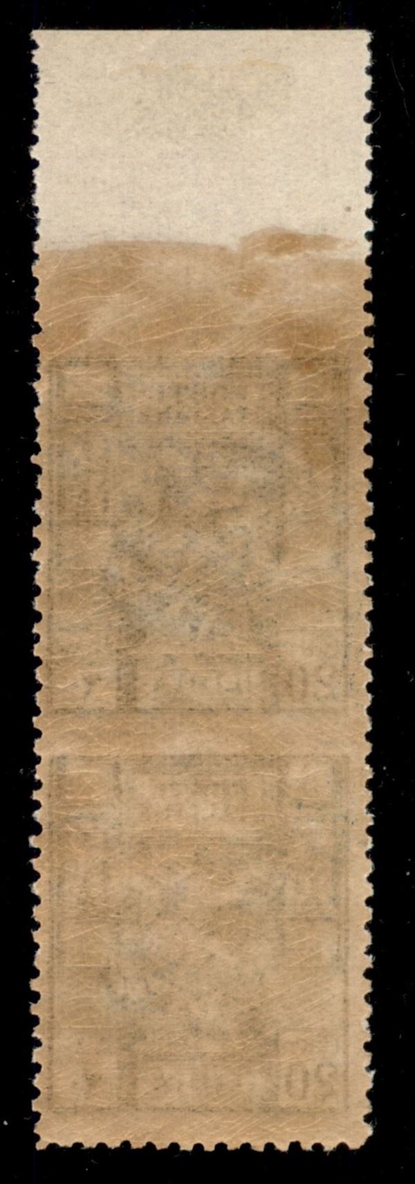 1926 - 20 cent Sibilla (54f) - coppia verticale bordo foglio - non dentellata in alto e al centro - gomma integra - cert. AG