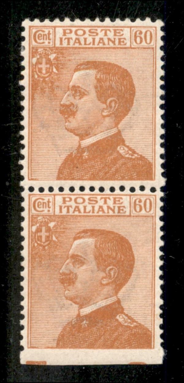 1926 - Michetti 60 cent coppia verticale con l'esemplare inferiore non dentellato in basso (205 varietà) nuovo con gomma integra