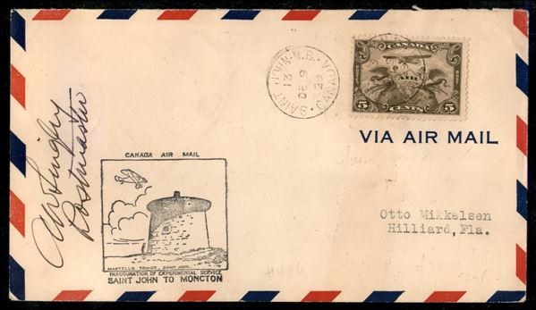 1929 (9 dicembre) - S. John Moncton - Muller 169a - aerogramma del volo