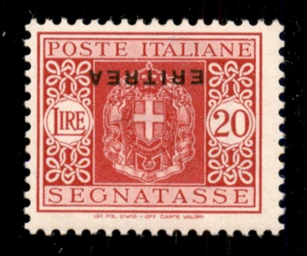1934 - 20 lire (38a) con soprastampa capovolta - gomma integra - Oliva + Diena