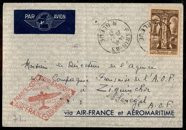 1937 (1 marzo) - Francia Senegal - Muller 397 - aerogramma da Parigi a Ziguinchor