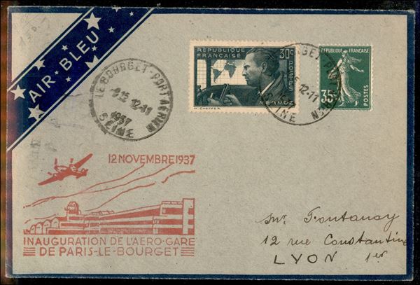 1937 (12 novembre) - Aeroporto Le Bourget - Muller 322 - aerogramma da Parigi a Lione