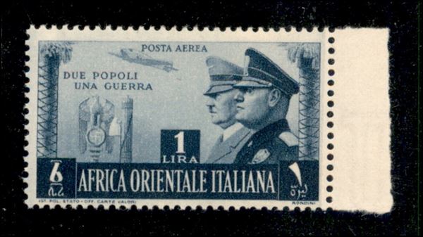 1941 - 1 lira Fratellanza d'armi (20 - aerea) - bordo foglio - gomma integra