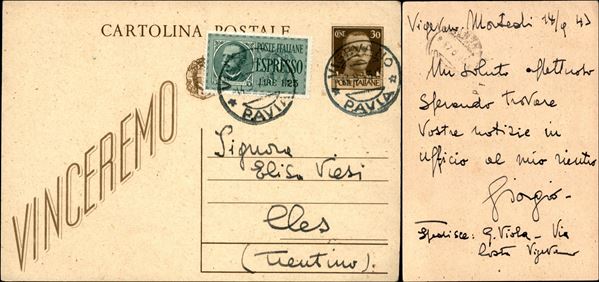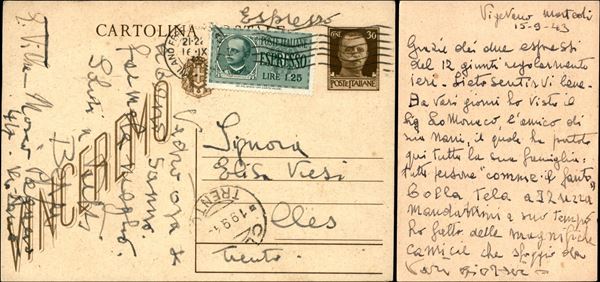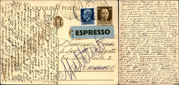 1943 (14/24 settembre) - 6 cartoline postali usate nel periodo con affrancature espresso - interessante insieme