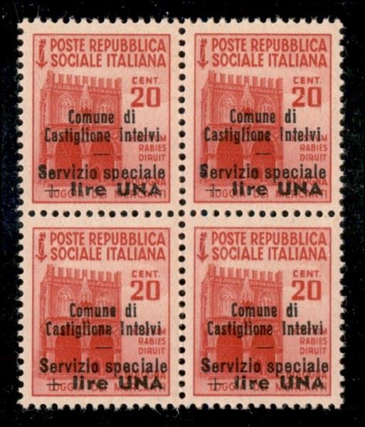 1945 - 20 cent + 1 lira (5) in quartina - gomma integra