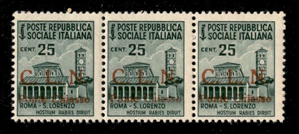 1945 - 25 cent (4 + 4ba + 4) - striscia di 3 C punto piccolo (al centro) - gomma integra
