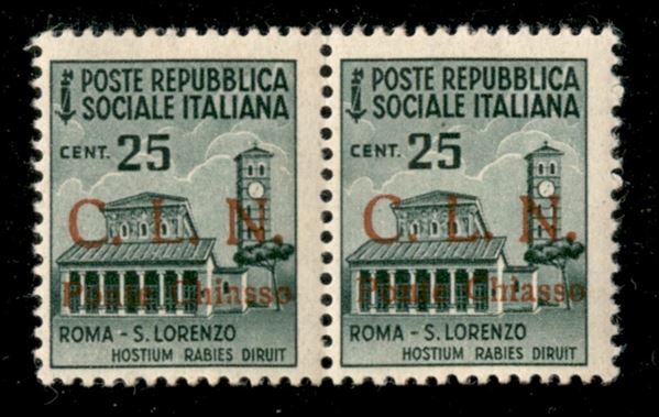 1945 - 25 cent (4 + 4ba) in coppia con C punto piccolo a destra - gomma integra - non catalogato