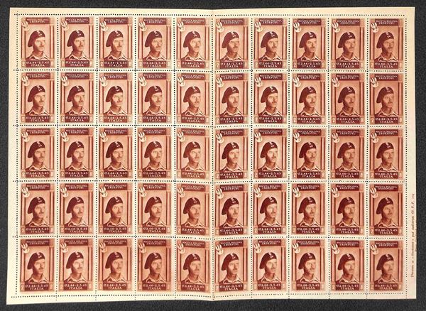 1946 - Intero foglio di 50 esemplari del 2 zloty bruno rosso (8) - senza gomma