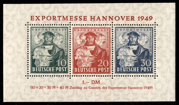 1949 - Bizona - Foglietto Esposizione di Hannover (B1 - 103 I/105 I) - gomma integra