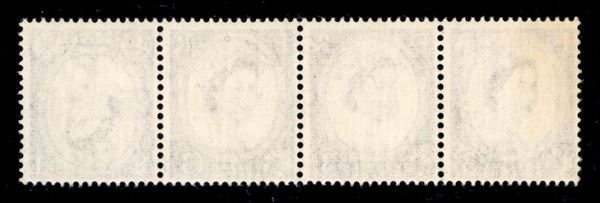 1958 - 3 pence (323 varietà - Stanley G. 545aa) - striscia di quattro con coppia tete beche a destra - gomma integra