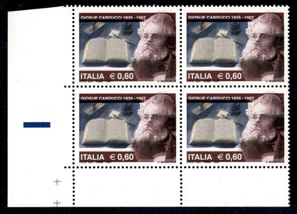 2007 - 60 cent Carducci (2948) in quartina - colori spostati - gomma integra