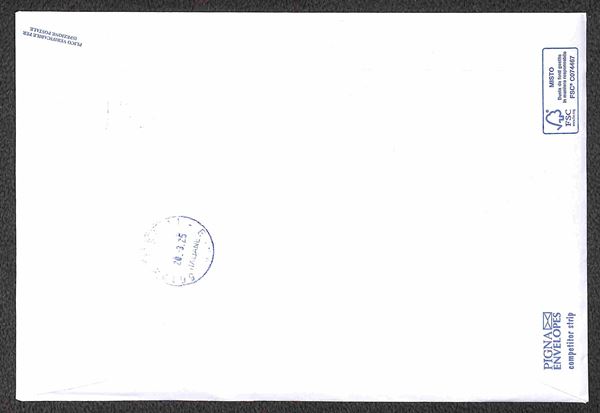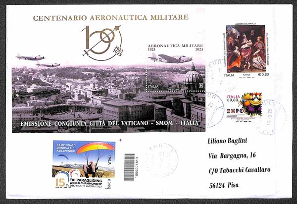 2023 - Foglietto Centenario Aeronautica Militare (135) su busta con complementari (3536 + 3587 + 3764) da Roma a Pisa del 15.3.25