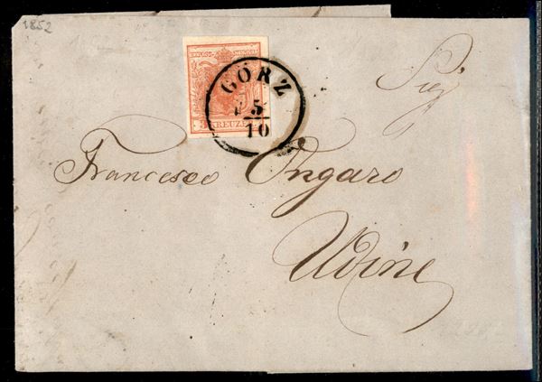 3 kreuzer (3) isolato su lettere da Gorz a Udine del 5.10.52 - molto bella