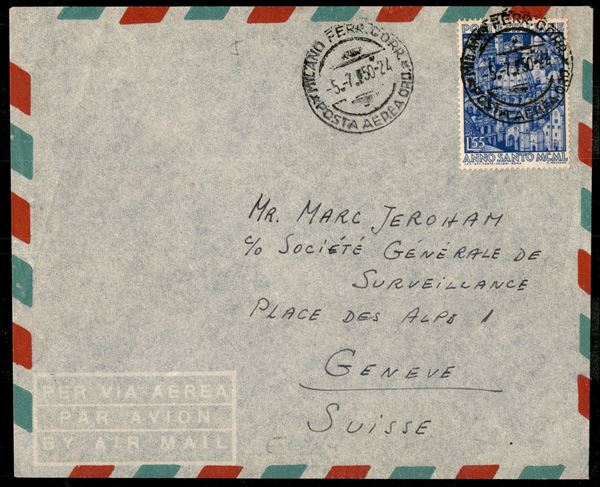 55 lire Anno Santo (621) su lettera da Milano per Ginevra del 5.7.50