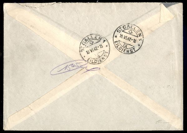 Aerogramma affrancato per 90 lire con P. Aerea (129/132) da S. Remo a S. Gallo del 15.6.47