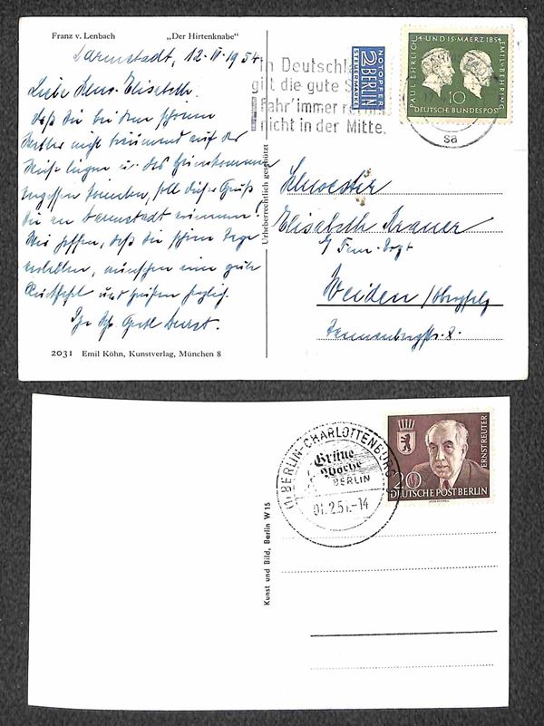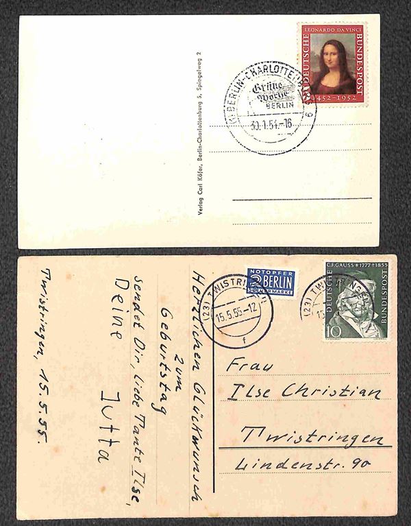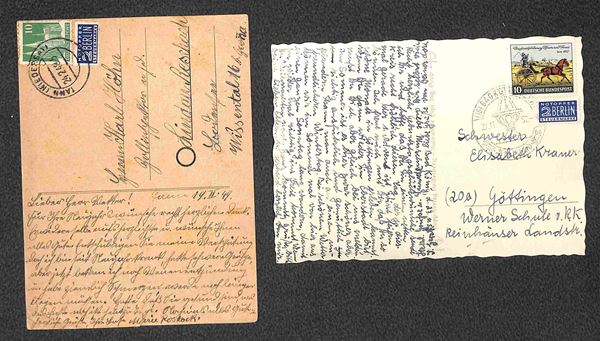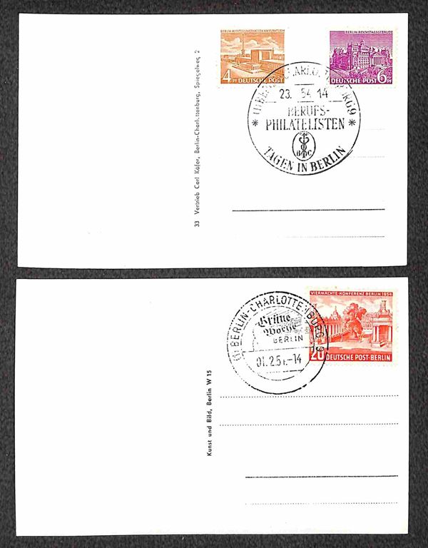 Berlino - 1949/1956 - Otto cartoline con affrancature del periodo - 4 viaggiate + 4 con annulli speciali