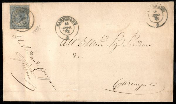 Carignano 15 dic. 63 d.c. azzurro (P.ti 12) - busta senza testo affrancata con 15 cent (L18) per Carmagnola