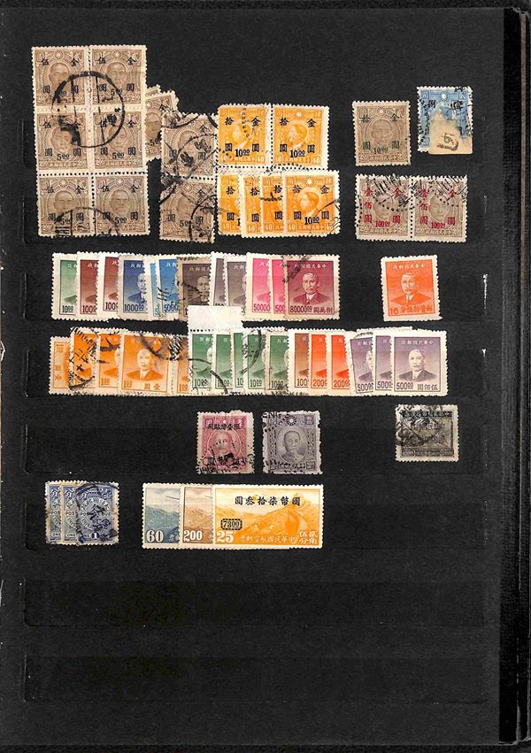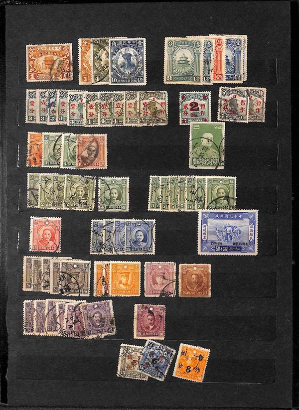 CINA - 1890/1945 - Collezione di valori usati e in parte nuovi del periodo in 1 classificatore - principalmente periodo Imperiale con qualche buona presenza Occupazione Giapponese e un pò di Formosa - completa il lotto un insieme di francobolli e buste di Taiwan - merita esame