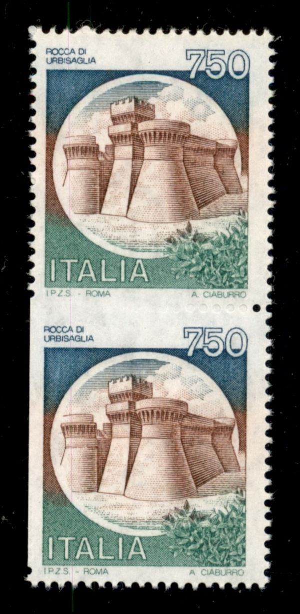 Coppia del 750 lire (1524A) non dentellato in parte al centro e a sinistra sul pezzo inferiore - gomma integra - Biondi