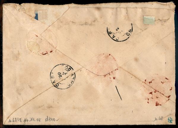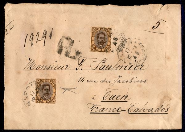 Due 1 lira Umberto (48) su raccomandata da Napoli a Caen del 17.12.92 - raro uso isolato - ex coll. Provera - cert. Bottacchi