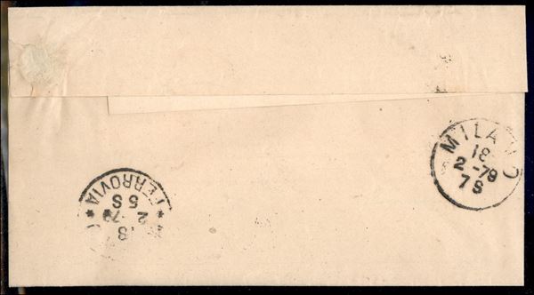 Due metà del 10 cent (27) ricomposte su lettera da Veduggio (corsivo lineare) a Milano del 18.2.78
