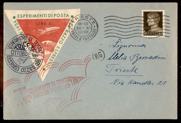 Esperimento di Posta Razzo da Trieste del 30.10.34 con 10 cent Imperiale (245)