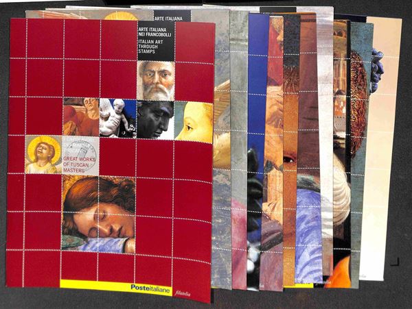 FOLDER FILATELICI POSTE ITALIANE - 1999/2003 - Collezione di 26 folder diversi - notato cofanetto Arte Italiana nei francobolli - interessante insieme