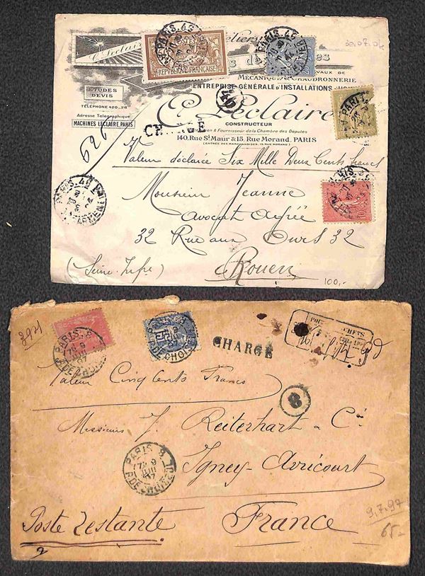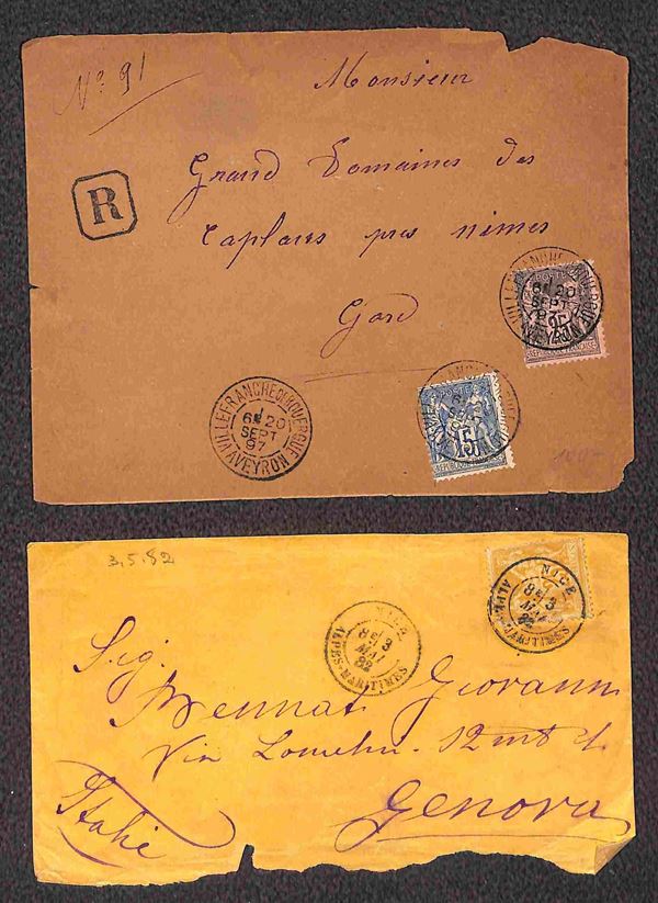FRANCIA - 1876/1904 - Dieci buste + un frontespizio + una cartolina + affrancature del periodo - da esaminare