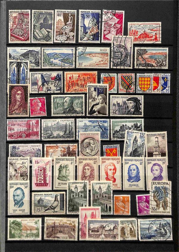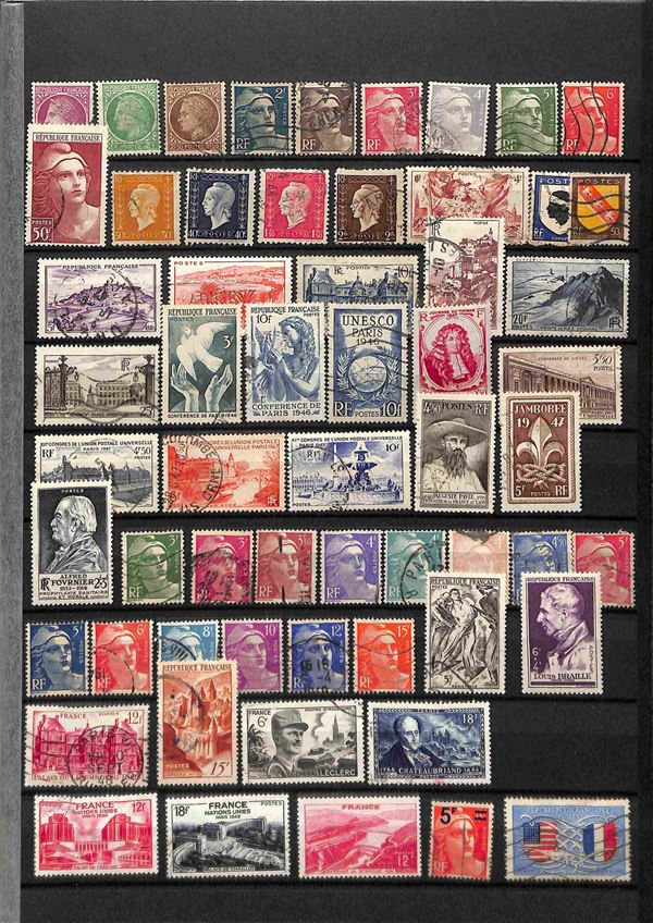 FRANCIA - 1945/1974 - Insieme di valori usati del periodo montati su 3 pagine di raccoglitore - da esaminare