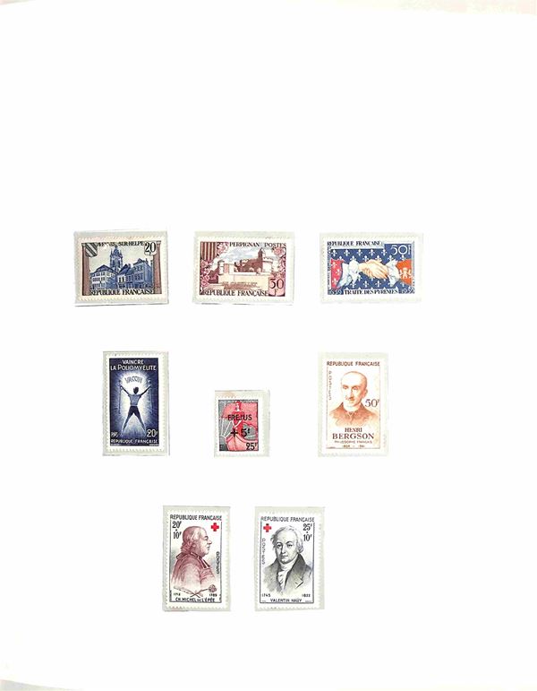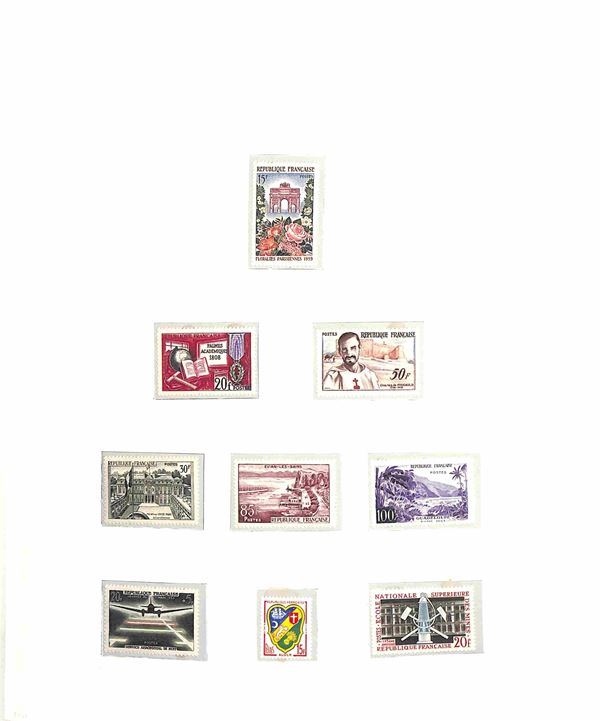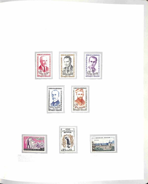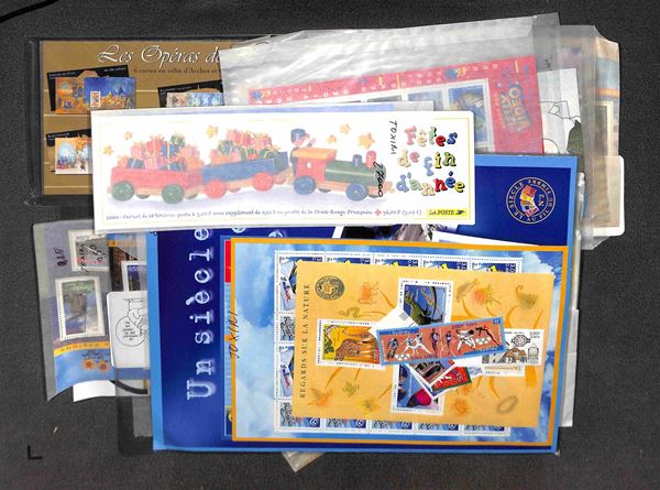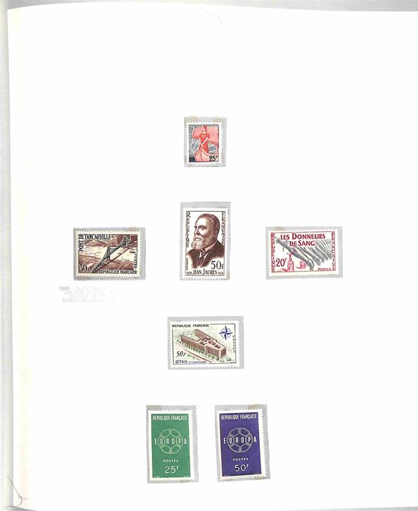 FRANCIA - 1959/2000 - Collezione per lo pił completa con pochissime mancanze - valori nuovi del periodo in 3 album pił una scatola con francobolli sciolti e fogli annate 1999/2000 - 2 album GBE dal 1959 al 1985 e 1 album Marini dal 1986 al 1994 - posta ordinaria servizi foglietti e libretti - ottimo insieme - merita esame