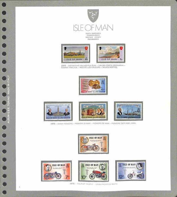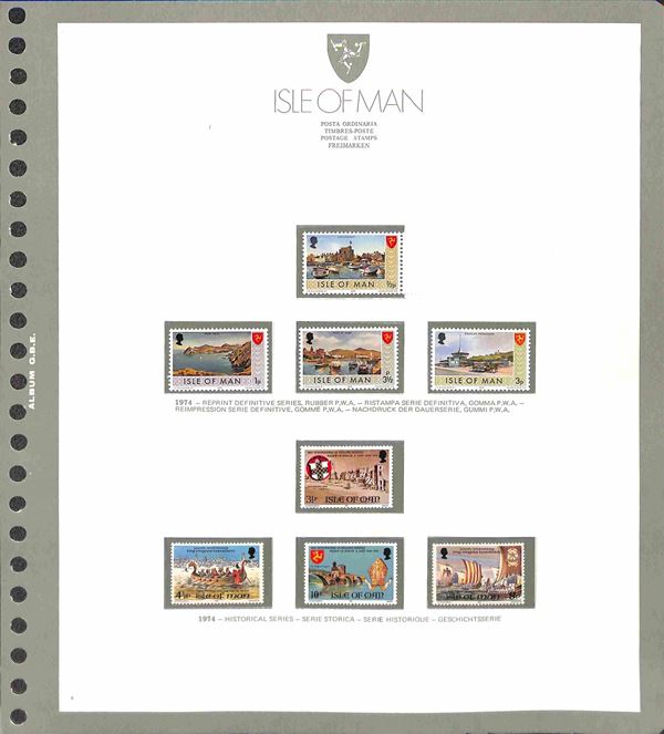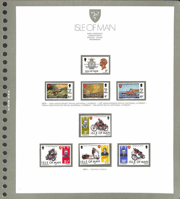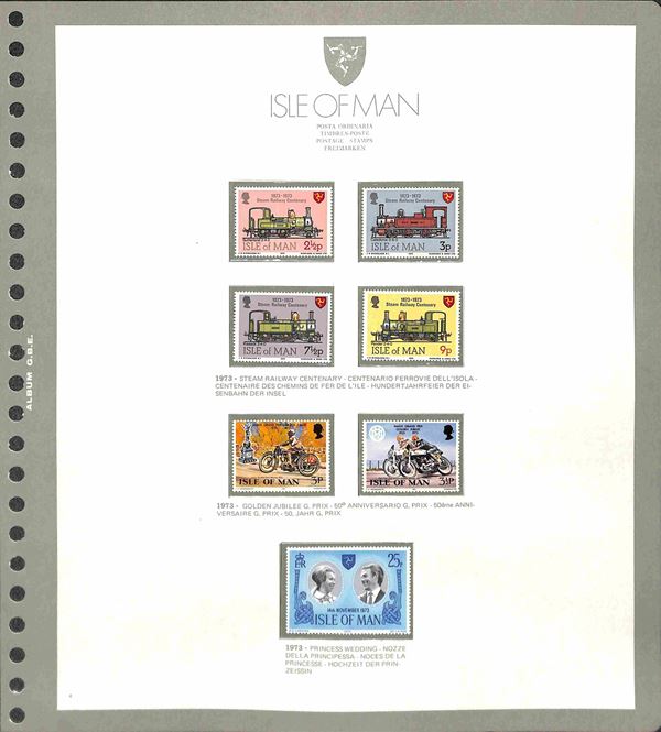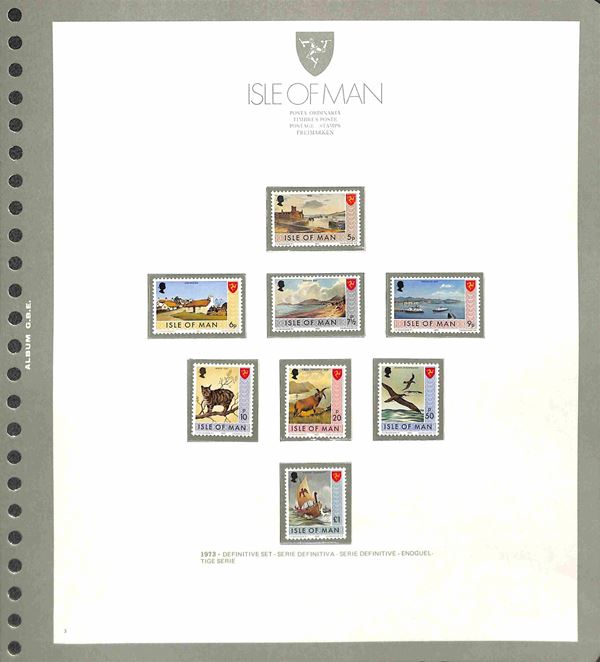 ISLE OF MAN - 1973/1994 - Collezione completa di valori nuovi del periodo in 2 album - 1 GBE dal 1973 al 1985 e 1 Marini dal 1986 al 1990 pił alcuni fogli nuovi abbate 1991 + 1995/1997 e i relativi francobolli da inserire - posta ordinaria servizi e foglietti - ottimo insieme - merita esame