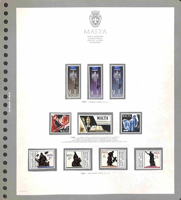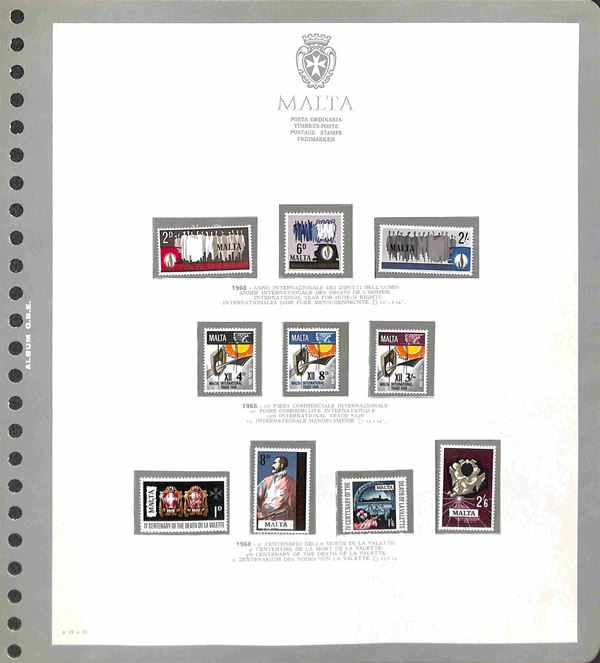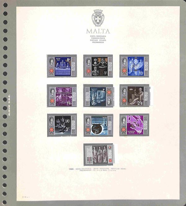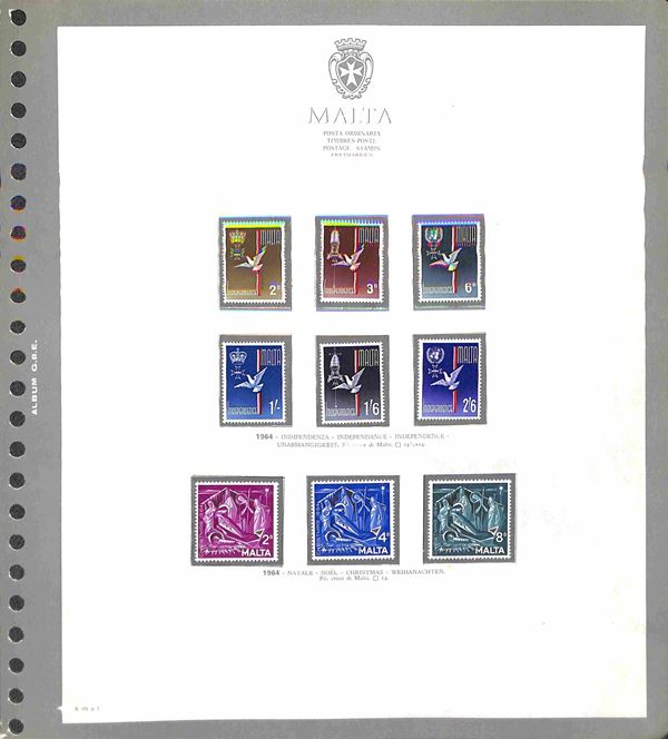 MALTA - 1964/1994 - Collezione completa di valori nuovi del periodo in 2 album - 1 album GBE dal 1964 al 1985 e 1 album Marini dal 1986 al 1986 al 1994 pił alcuni valori sciolti e fogli annate 1995/1998 - posta ordinaria servizi e foglietti - ottimo insieme - merita esame