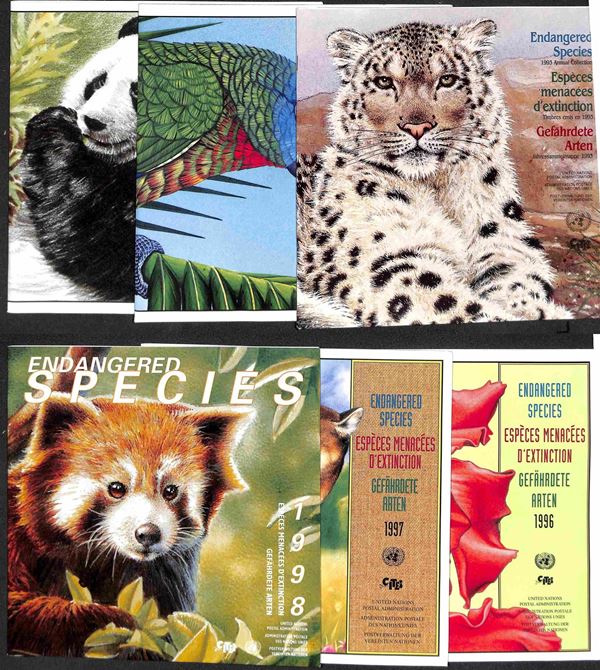 ONU - 1993/2010 - Collezione di Depliant ricordo Specie minacciate d’estinzione - 36 oggetti dei 18 anni in doppia copia una gomma integra l'altra con annullo primo giorno