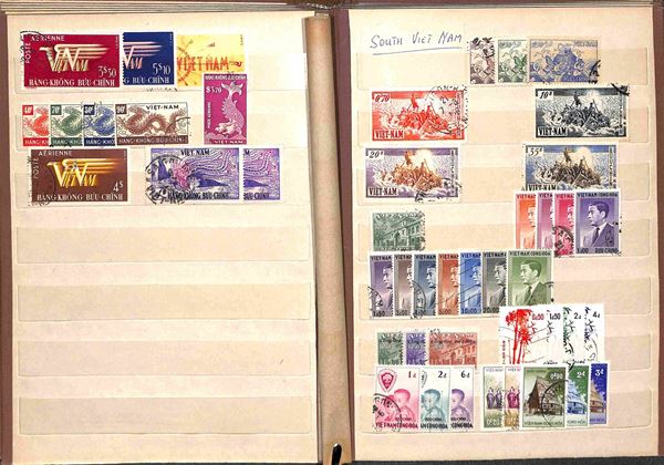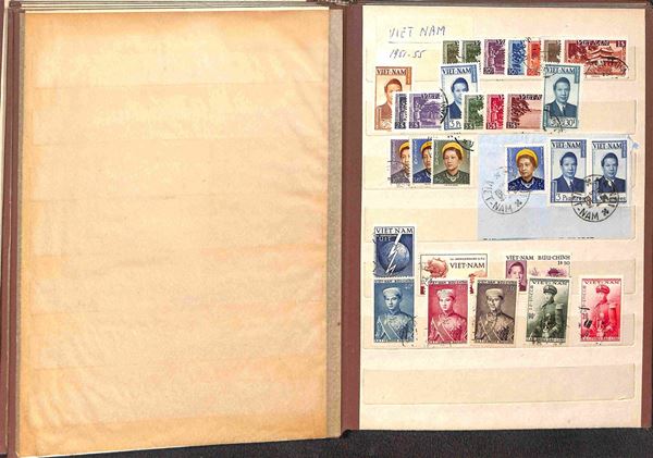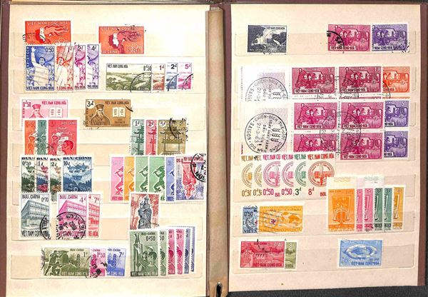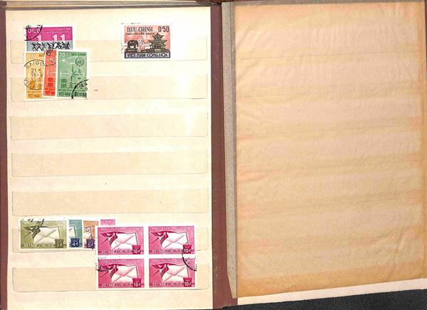 PAESI ASIATICI - 1950/1980 circa - Accumulazione di valori nuovi e usati del periodo del Caos Cambogia Vietnam e Vietnam in 1 classificatore - notate serie complete nuove alcune buste e molti foglietti nuovi - merita esame