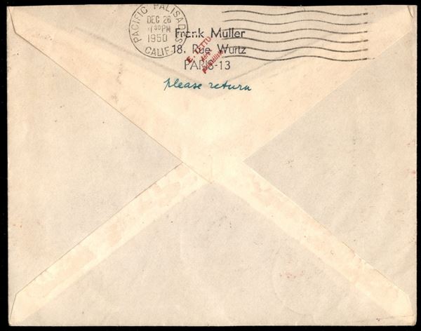 Parigi New York - 20 dicembre 1950 - aerogramma del volo