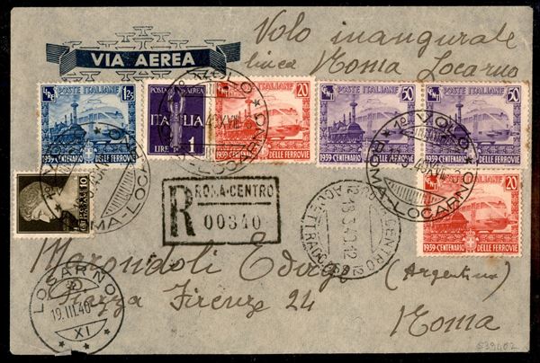 Primo Volo Roma Locarno 19.3.40 (Longhi 4002) - raccomandata con bella affrancatura