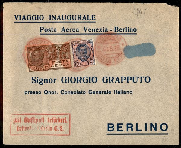 Primo Volo Venezia Berlino 30.5.28 (Longhi 1845) su linea Venezia Vienna Berlino - dispaccio composto da circa 400 aerogrammi