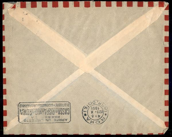 Quartina del 20 cent (502) tete beche con interspazio - aerogramma da Zurigo a Roma del 27.10.51