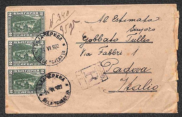 Raccomandata per Padova del 24.6.922 con affrancatura multipla fronte (173 tre) retro (133 cinque)