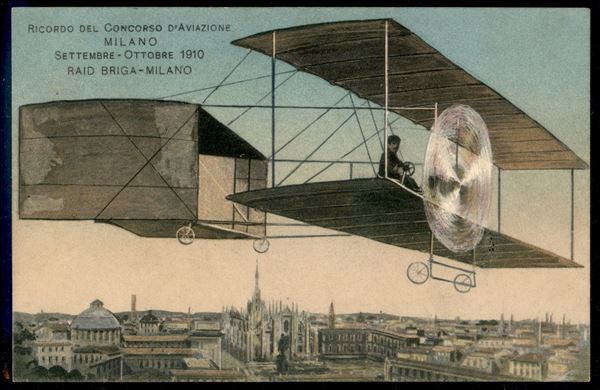 Raid Briga Milano - Cartolina a ricordo del concorso aviatorio (Longhi 317) - immagini a valigetta mancanti - Milano 27.9.1910