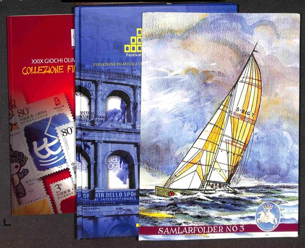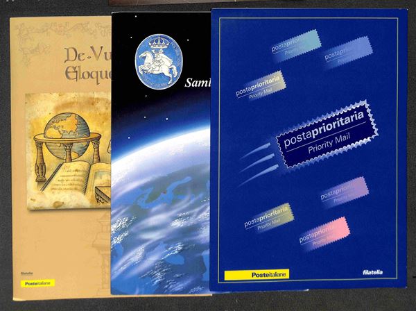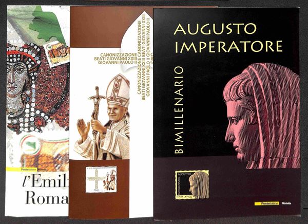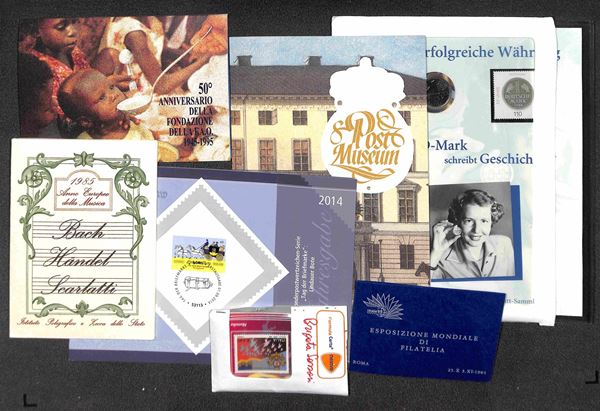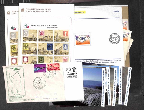 REPUBBLICA - Miscellanea 1980/2014- Scatola contenete una ventina di folder + buste/cartoline di manifestazioni filateliche + altro materiale vario - bell'insieme