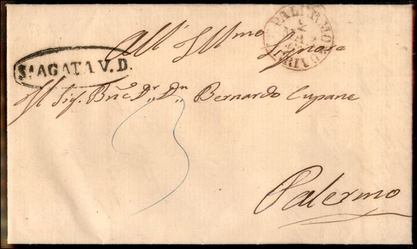 S. Agata V.D. - lettera per Palermo del 17.2.61 - tassata