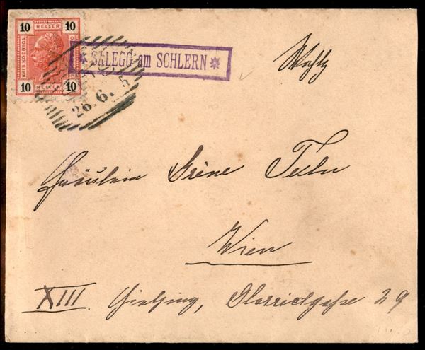 Salegg am Schlern - 10 heller (74) su busta per Vienna del 26.6.05