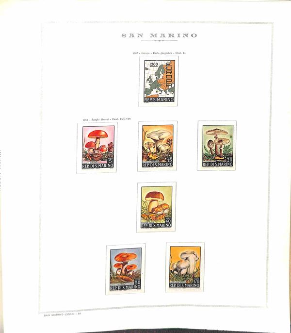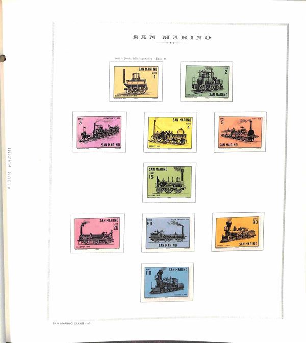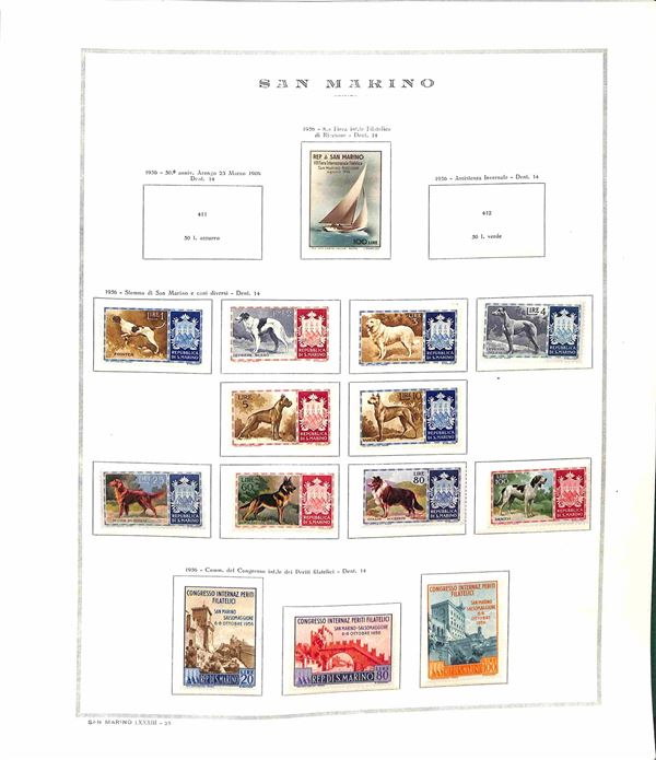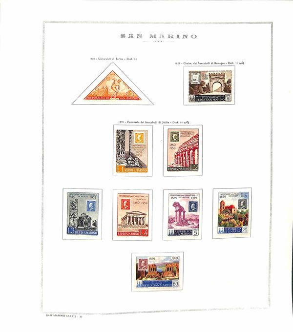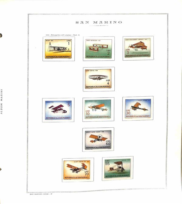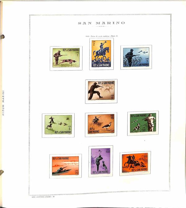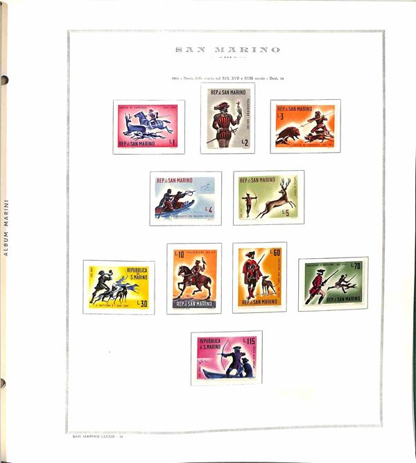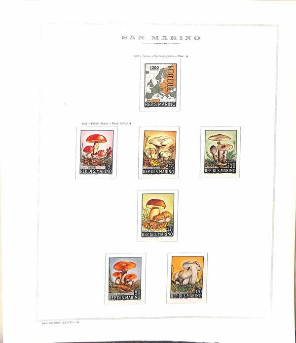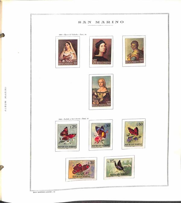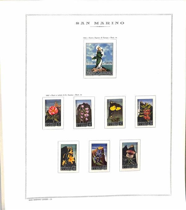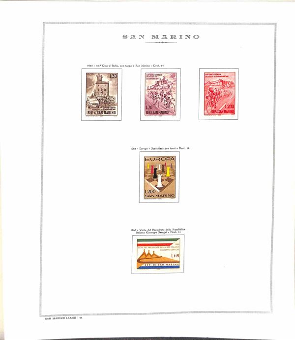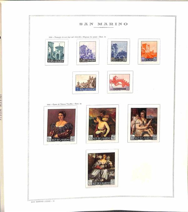 SAN MARINO - 1955/1967 - Collezione di valori e serie complete del periodo con poche mancanze montati in album Marini - presente 1000 lire Elicottero - gomma integra - valore di catalogo oltre 300 €