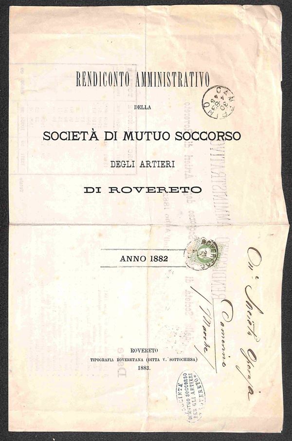 Società di Mutuo Soccorso degli Artieri di Rovereto - 3 kreuzer (36) isolato su piego per Camerino del 29.4.83