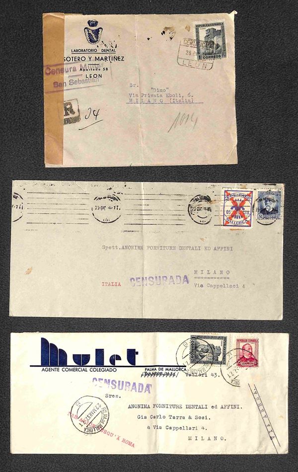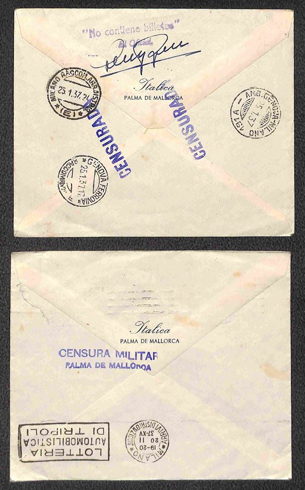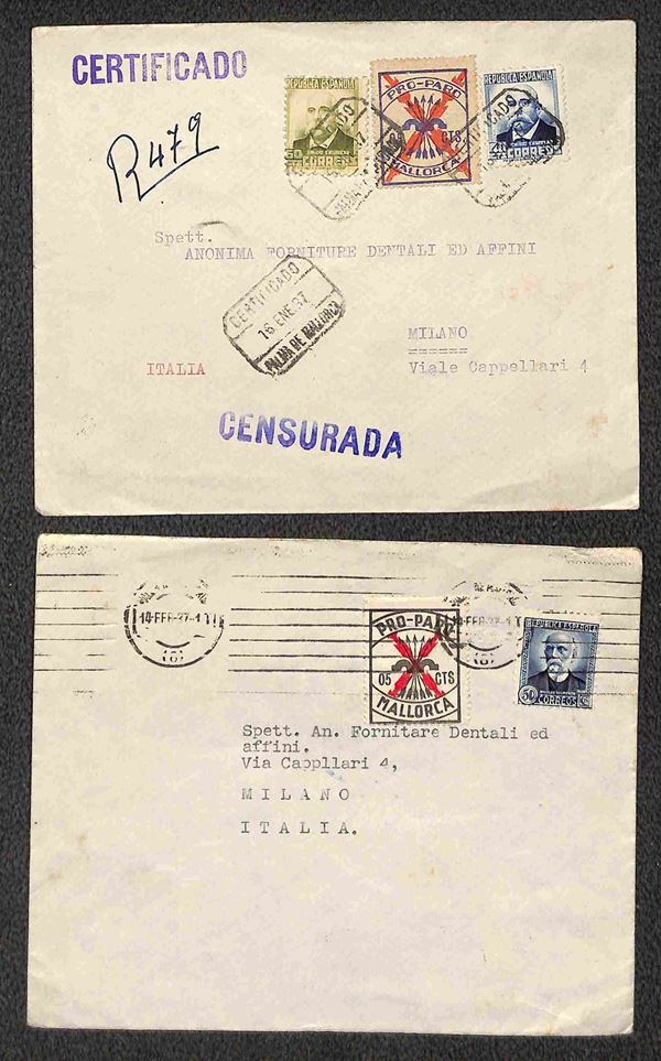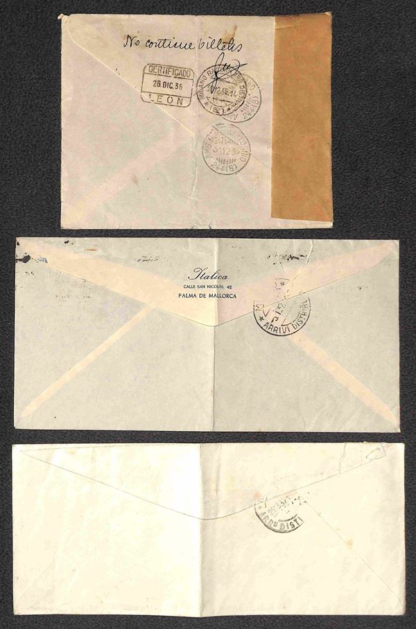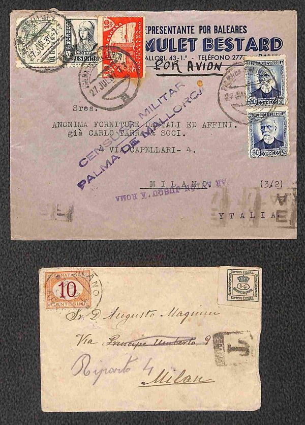 SPAGNA - 1936/1937 - Guerra di Spagna - Insieme di 6 oggetti postali da Palma di Maiorca - alcuni con erinnofili - merita esame