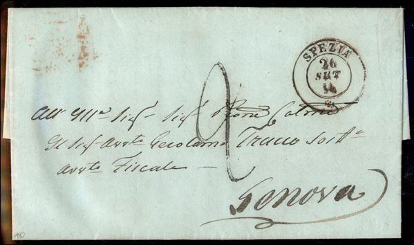 Spezia (rosso + nero sovrapposti - non catalogato) - lettera per Genova del 26.9.94 - tassata
